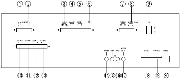 ⑦遙控輸出:與功率放大器遙控端子相連。用于應(yīng)急廣播時(shí)強(qiáng)行啟動(dòng)功率放大器。