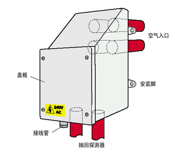 為監(jiān)控加熱器的工作情況,提供了一套溫度自動(dòng)調(diào)節(jié)裝置,監(jiān)控離開空氣采樣扇的空氣溫度。如果加熱器沒有工作,溫度自動(dòng)調(diào)節(jié)裝置的觸點(diǎn)閉合并發(fā)出一般故障信號(hào)。當(dāng)GST空氣采樣式感煙火災(zāi)探測報(bào)警器與模擬編碼火災(zāi)自動(dòng)報(bào)警系統(tǒng)連接時(shí),可利用消防模塊(監(jiān)視模塊)進(jìn)行故障報(bào)警。