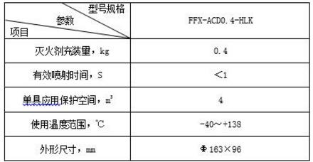 發(fā)動(dòng)機(jī)艙用超細(xì)干粉自動(dòng)滅火裝置主要技術(shù)參數(shù)