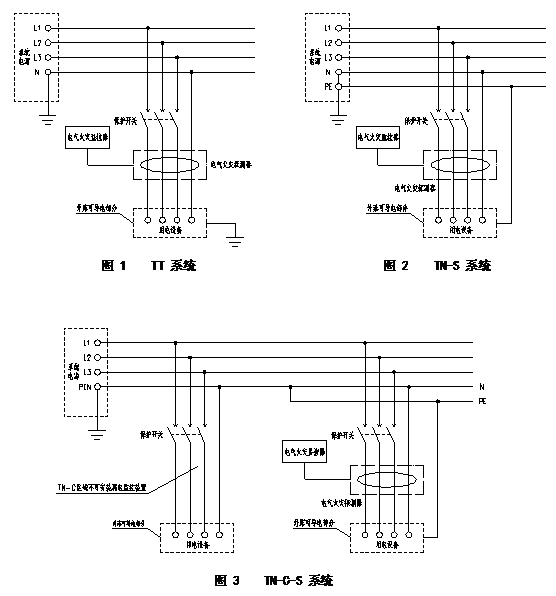 3.4.4TN-C-S接地系統(tǒng)中,電氣火災(zāi)監(jiān)控系統(tǒng)的剩余電流動作保護只允許使用在PE線與N線分開以后的部分。