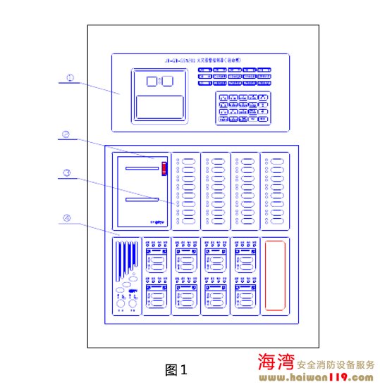 JB-QB-GST200火災報警控制器(聯(lián)動型)面板由顯示操作區(qū)、總線制控制區(qū)、多線制控制區(qū)及打印機面板組成,其結(jié)構(gòu)示意圖如圖1所示: