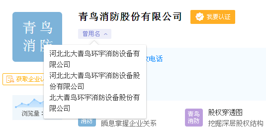 根據(jù)天眼查資料顯示,也已經(jīng)顯示“青鳥消防股份有限公司”作為公司名稱。使用過如下曾用名: